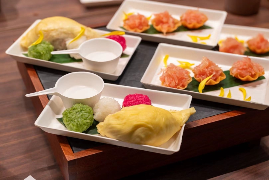 随着东南亚榴莲集中上市,“榴莲脑袋”最爱的季节到了。最近,高端商超city’super上架马来西亚黑刺、猫山王及树上熟金枕头等高端榴莲品类,采用成熟度达标后即时空运的模式,从源头规避催熟、食品安全等问题,守住高端食材品质标准。上周末,一场“春之味” 市集在city’super兴业太古汇开市,曾任职泰国米其林推荐餐厅的泰餐主厨还以新鲜树上熟榴莲为原料,现场制作榴莲糯米饭,让消费者实现“站着品尝米其林级环球美味”。
