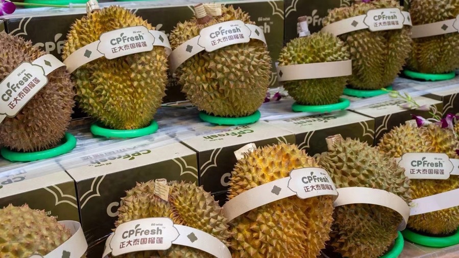 眼下正值东南亚榴莲集中上市旺季,大批新鲜榴莲搭乘跨境冷链通道密集抵沪,从批发市场、高端商超到购物中心,上海榴莲消费全面升温。依托中老铁路冷链物流提速、进博会溢出效应加持,新鲜度更高的进口榴莲加速走上申城市民的餐桌。